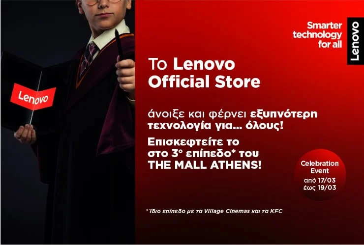 Το νέο κατάστημα της Lenovo, του Νο1 κατασκευαστή ηλεκτρονικών υπολογιστών στον κόσμο, ξεκίνησε πρόσφατα τη λειτουργία του στο τρίτο επίπεδο του The Mall Athens, διαμορφώνοντας τον νέο, απόλυτο τεχνολογικό προορισμό.