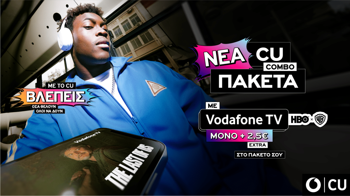 Τώρα, οι συνδρομητές CU έχουν τη δύναμη να στριμάρουν όλο το μοναδικό περιεχόμενο του Vodafone TV από Warner Bros & HBO σε κινητό, tablet, ή smart TV! Όλα αυτά με ένα από τα hot CU Combo πακέτα που συνδυάζουν data, λεπτά και Vodafone TV με μόνο 2,5€ έξτρα σε σχέση με τα κλασσικά combo πακέτα.