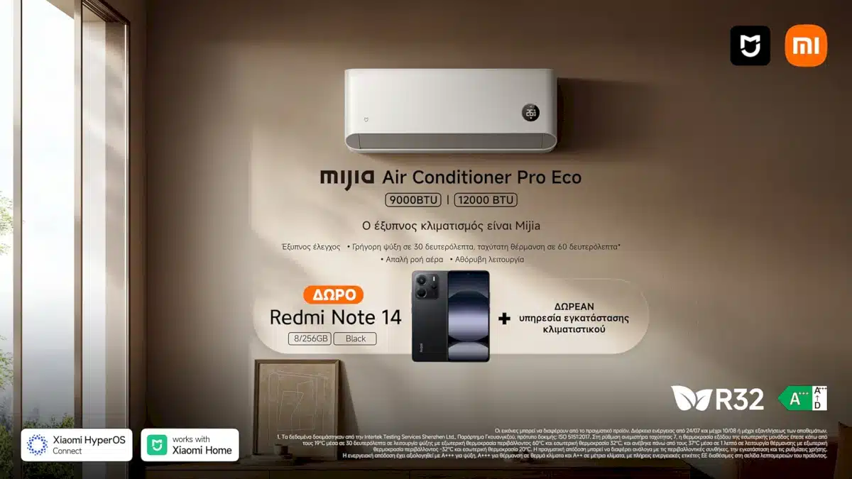Η Xiaomi, εταιρεία καταναλωτικών ηλεκτρονικών και καινοτόμων κατασκευών με smartphone και έξυπνο υλικό συνδεδεμένο με μια πλατφόρμα Internet of Things (IoT) στο επίκεντρό της, επεκτείνει τη δυναμική της παρουσία στην ελληνική αγορά, λανσάροντας για πρώτη φορά δύο καινοτόμα κλιματιστικά τοίχου, το Mijia Air Conditioner Pro Eco 9000 ΒΤU και το Mijia Air Conditioner Pro Eco 12000 BTU. Πρόκειται για δύο νέα προϊόντα που ενσωματώνουν προηγμένες λειτουργίες εξοικονόμησης ενέργειας, έξυπνο έλεγχο μέσω app, και τεχνητή νοημοσύνη για προσωποποιημένη άνεση στο σπίτι.