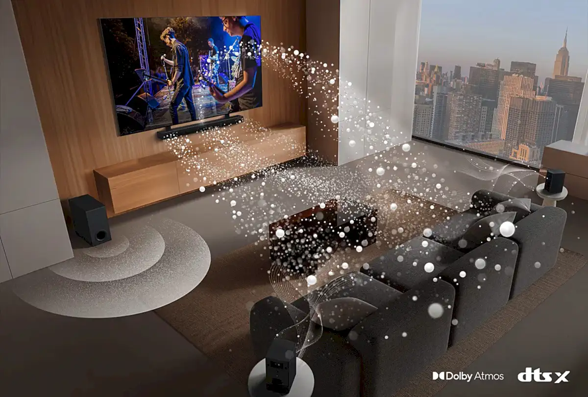 Με πλήρη ηχητική απόδοση 5.1.1 καναλιών και κεντρικό up-firing ηχείο, το Home Theater Soundbarδημιουργεί μια καθηλωτική τρισδιάστατη ηχητική εμπειρία1, γεμίζοντας κάθε γωνιά του σπιτιού με ήχο που σας αγκαλιάζει. Οι διάλογοι γίνονται κρυστάλλινοι, οι δράσεις ενισχύονται με δυναμισμό και η κάθε στιγμή αποκτά συναισθηματικό βάθος2.