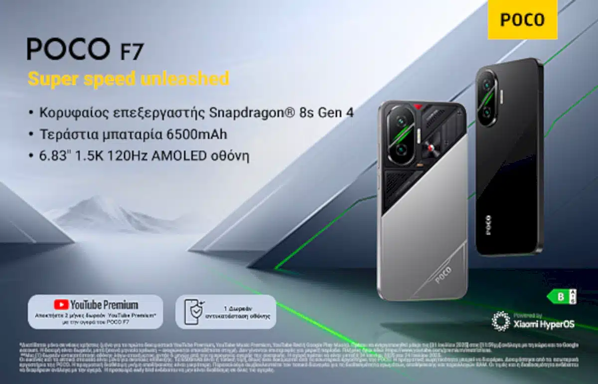 Tο νέο POCO F7 είναι διαθέσιμο στην ελληνική αγορά και μάλιστα με ειδική προσφορά early bird.
