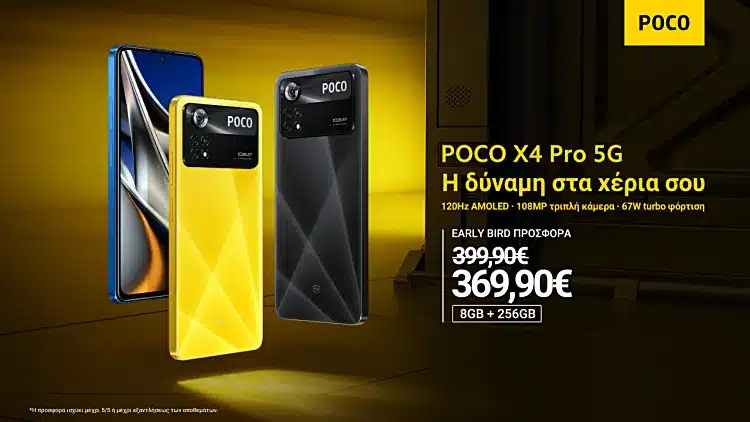 Το POCO X4 Pro 5G, μια δυνατή συσκευή, κατάλληλη για δημιουργούς περιεχομένου, και το POCO M4 Pro, ένα ακόμη powerhouse από την εταιρεία, κάνουν 29/4 ντεμπούτο στην ελληνική αγορά. Τα POCO X4 Pro 5G και POCO M4 Pro είναι διαθέσιμα στην ελληνική αγορά από τις 28 Απριλίου, με ειδική έκπτωση μέχρι τις 5 Μαΐου ή μέχρι εξαντλήσεως των αποθεμάτων. Το POCO X4 Pro 5G και το POCO M4 Pro που παρουσιάστηκαν κατά τη διάρκεια του φετινού MWC 2022 στη Βαρκελώνη.