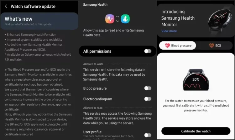 Το SamMobile ανέφερε, μέσω ενός tip από τον χρήστη @Da_Ali_G_Show, πως οι ιδιοκτήτες του Galaxy Watch 4 στον Καναδά θα λάβουν ένα software update με αριθμό R8xxXXU1FVC8 το οποίο ενεργοποιεί το ηλεκτροκαρδιογράφημα και την μέτρηση της πίεσης στα smartwatch τους. Ενώ οι ιδιοκτήτες στις Η.Π.Α μπορούσαν να χρησιμοποιήσουν το feature του ηλεκτροκαρδιογραφήματος με την κυκλοφορία του smartwatch όταν το είχαν συνδεδεμένο με ένα κινητό Samsung Galaxy, το feature του πιεσόμετρου έλειπε από την Βόρειο Αμερική.