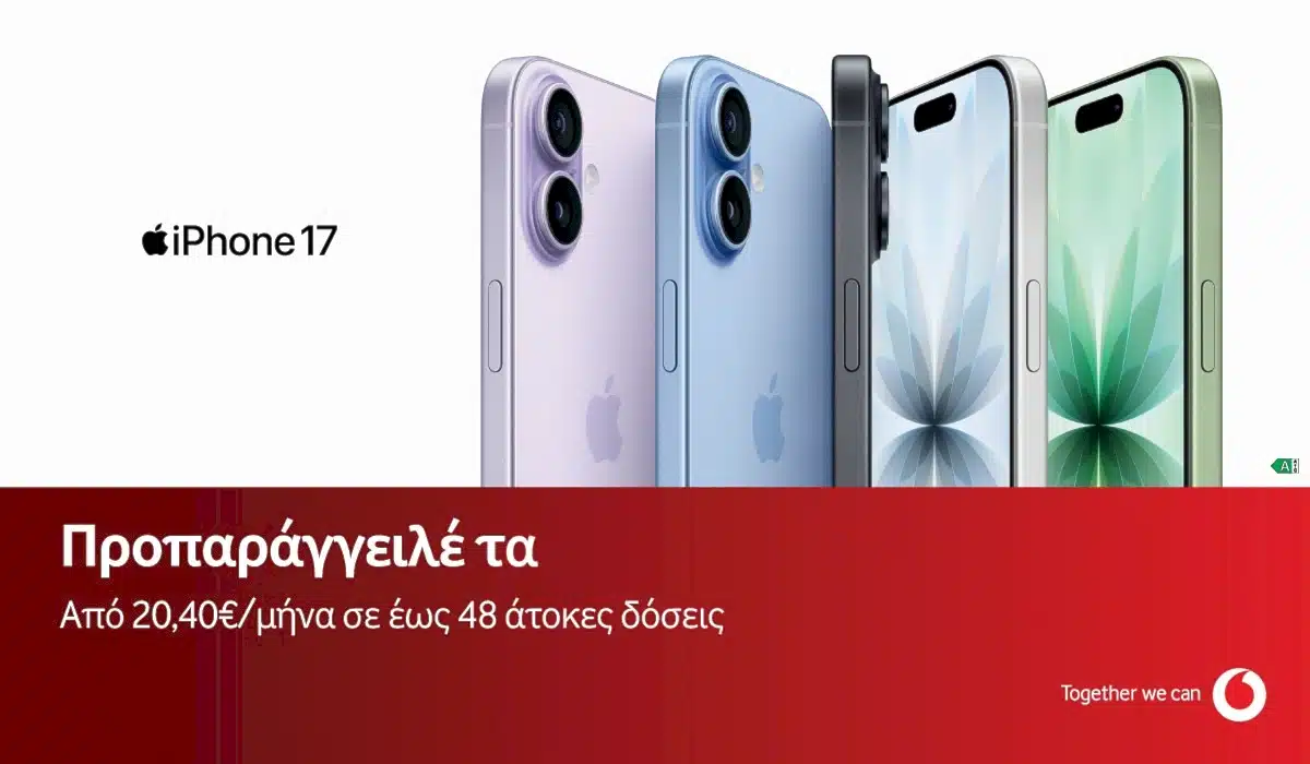Οι προπαραγγελίες για τα νέα μοντέλα iPhone ξεκίνησαν, ενώ θα είναι διαθέσιμα στα καταστήματα Vodafone από την Παρασκευή, 19 Σεπτεμβρίου 2025, στις 8:00 π.μ. τοπική ώρα.