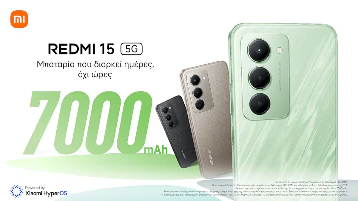 Το Redmi 15 5G συνδυάζει την αντοχή, τα καθηλωτικά visual και τις ΑΙ λειτουργίες, καθιστώντας το τον ιδανικό σύμμαχο για τις καθημερινές ανάγκες.