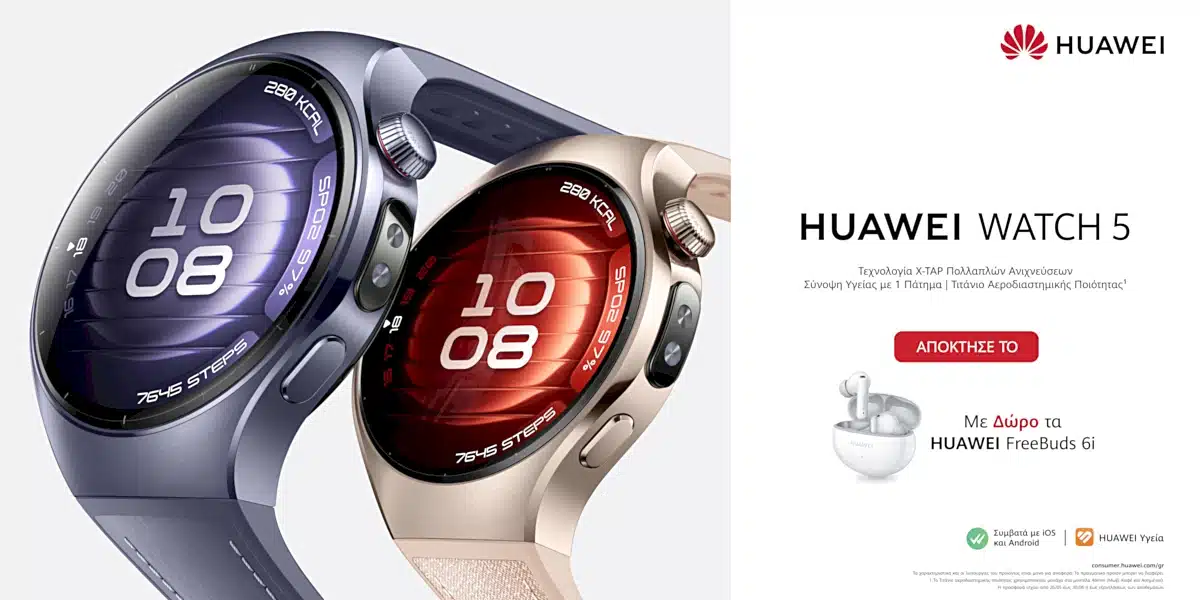 Διαθέσιμα τα νέα HUAWEI WATCH 5, WATCH FIT 5 Pro και FreeBuds 6 στην Ελλάδα — με δώρα τεχνολογίας που ενισχύουν την εμπειρία.