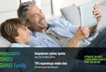 Απεριόριστο χρόνο ομιλίας προς όλα τα εθνικά δίκτυα και 70% περισσότερα mobile data προσφέρει η COSMOTE, σε όλους τους συνδρομητές των προγραμμάτων COSMOTE GIGAMAX Family S & M.