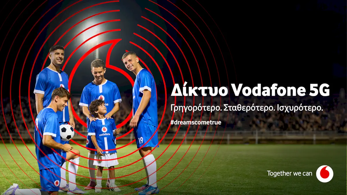 Αυτή η δύναμη του 5G δικτύου της Vodafone αποτυπώνεται στη νέα επικοινωνιακή καμπάνια της εταιρείας, στην οποία ένα μικρό παιδί από ένα ακριτικό νησί έχει την ευκαιρία να βρεθεί δίπλα στα νέα «αστέρια» της Εθνικής Ομάδας Ποδοσφαίρου, της οποίας η Vodafone αποτελεί επίσημο χορηγό από το 2004. Οι Κωνσταντίνος Καρέτσας, Χρήστος Μουζακίτης, Γιώργος Βαγιαννίδης και Κωνσταντίνος Κουλιεράκης σχηματίζουν μια μεγάλη ομάδα με το μικρό ήρωα της ταινίας αποδεικνύοντας πως κάθε όνειρο μπορεί να γίνει πραγματικότητα όταν υπάρχει ένα ισχυρό δίκτυο που στηρίζει κάθε ανάγκη και εξελίσσεται γρηγορότερα, σταθερότερα, πιο δυνατά από ποτέ.