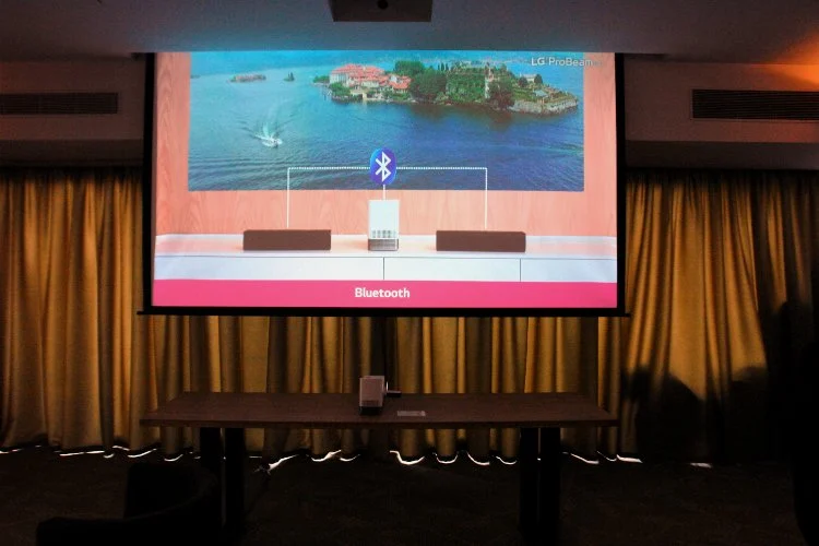 Μεγάλη εικόνα 1080p, που δημιουργεί από κοντινή απόσταση ο Ultra Short Throw projector, LG ProBeam HF85J. (φωτό: Electronicanto)