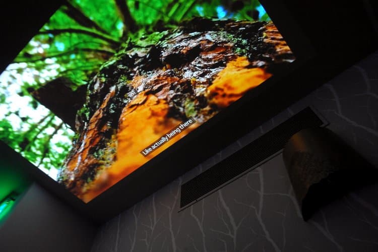 Όχι, δεν βλέπετε λάθος. Η εικόνα αυτή είναι 4Κ και προβάλλεται στην οροφή του δωματίου από τον LG CineBeam 4K Laser HU80KG, ο οποίος παρουσιάστηκε στη CES 2018. (φωτό: Electronicanto)