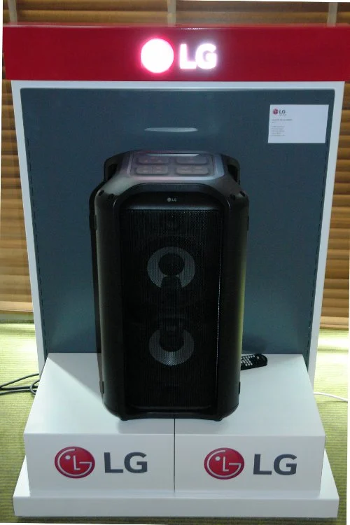 To σύστημα ηχείων LG XBoom RK7, με συνολική ισχύ 550W και LED Party Lighting. To XBoom RK7 μπορεί να τοποθετηθεί οριζόντια ή κάθετα. (φωτό: Electronicanto)