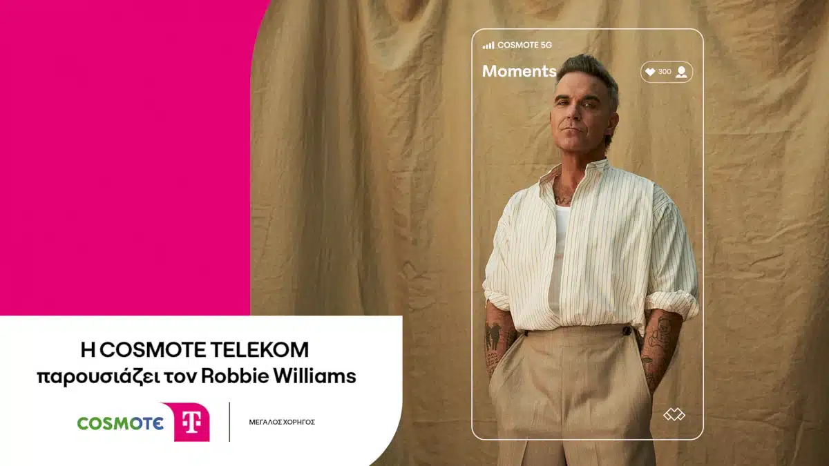 Τον Robbie Williams παρουσιάζει η COSMOTE TELEKOM, την Παρασκευή 2 Οκτωβρίου στο Καλλιμάρμαρο Παναθηναϊκό Στάδιο, ως Μεγάλος Χορηγός σε ένα από τα μεγαλύτερα μουσικά events της χρονιάς.